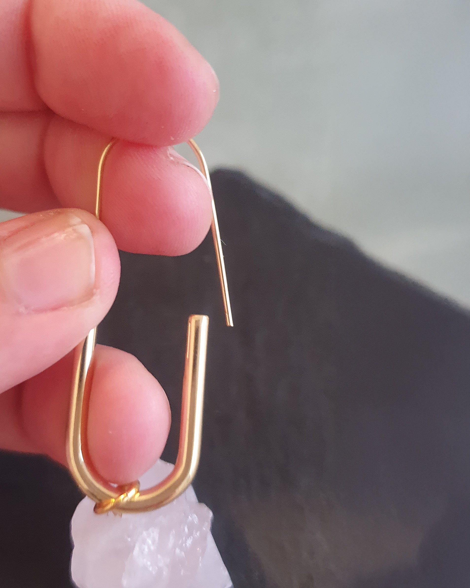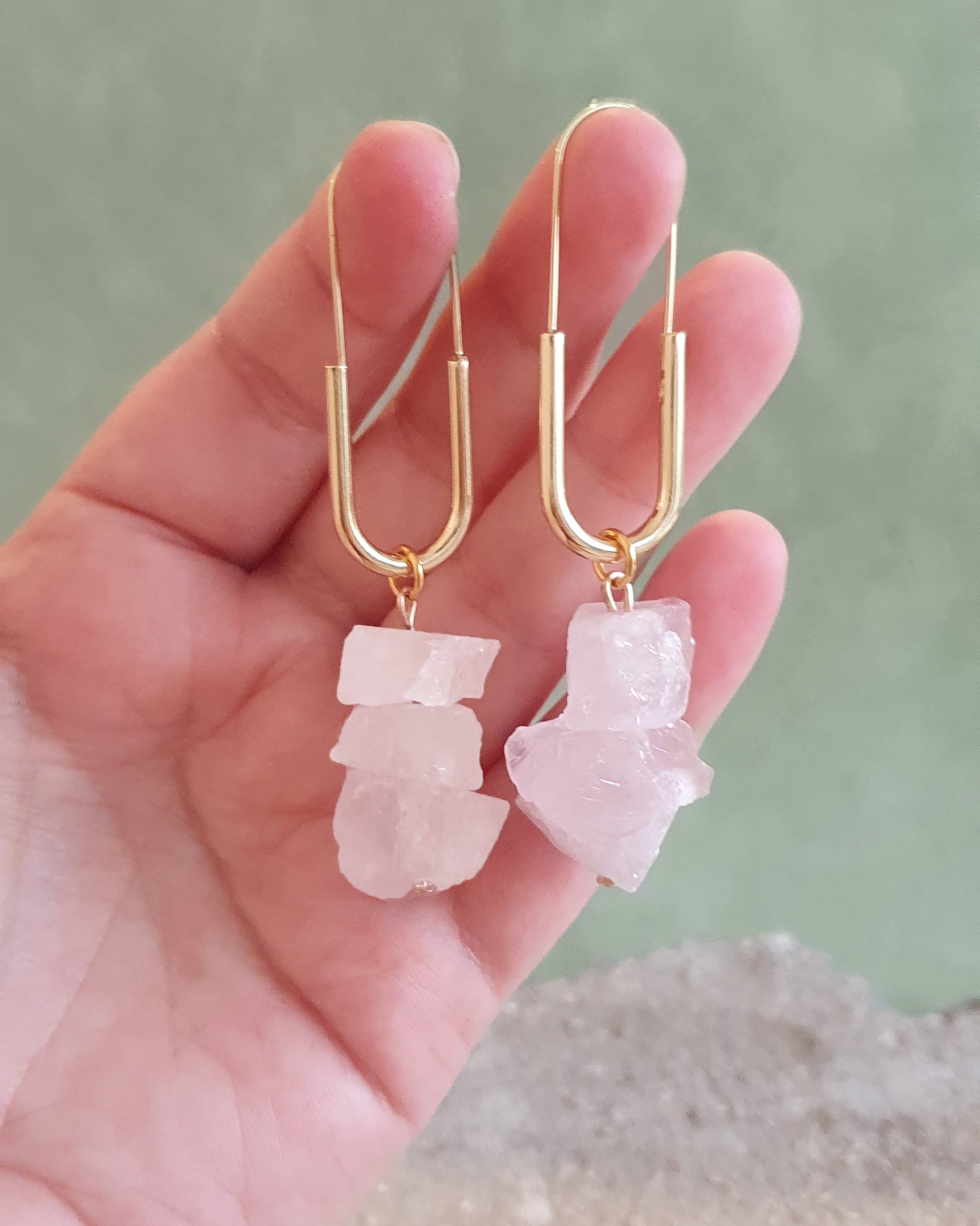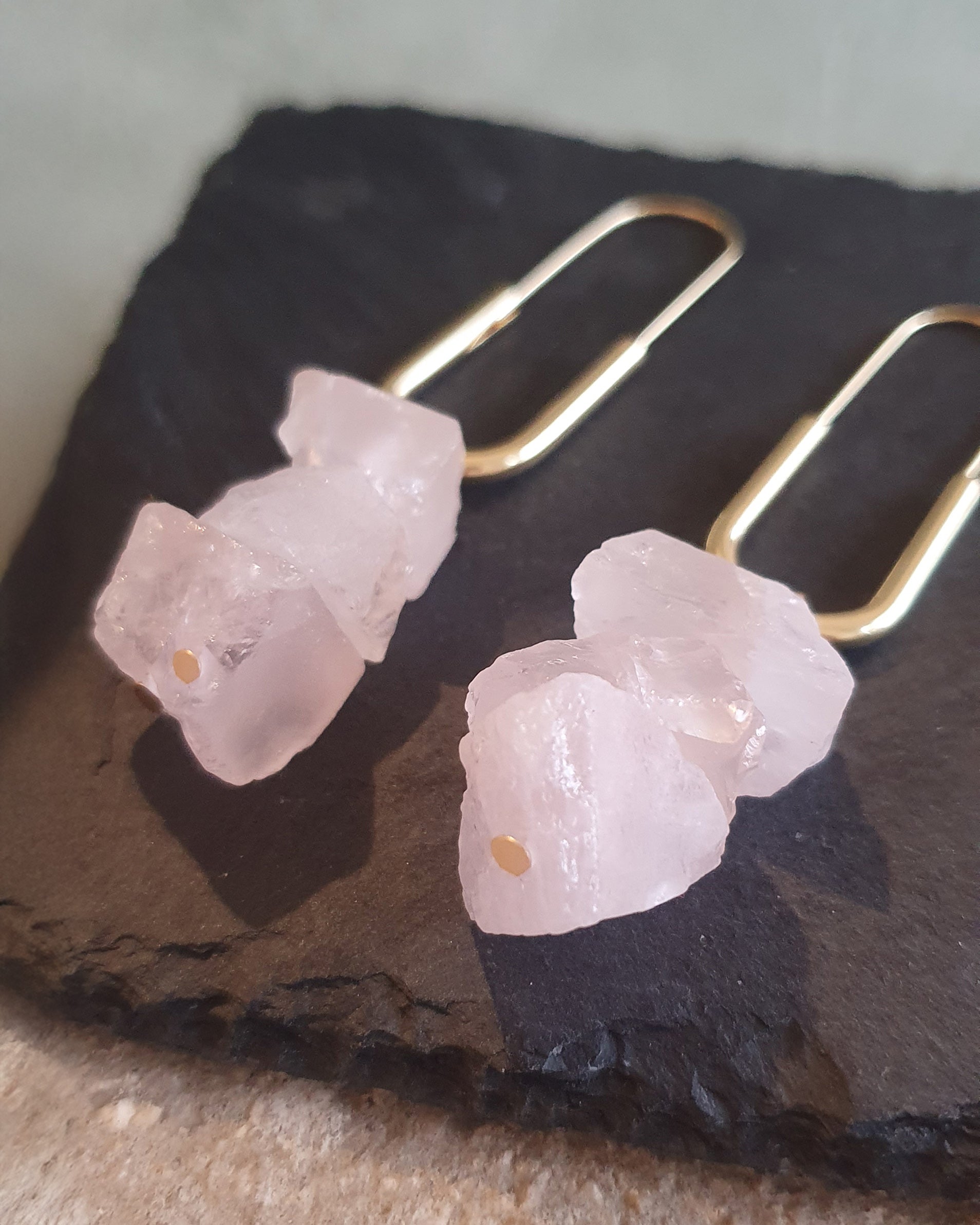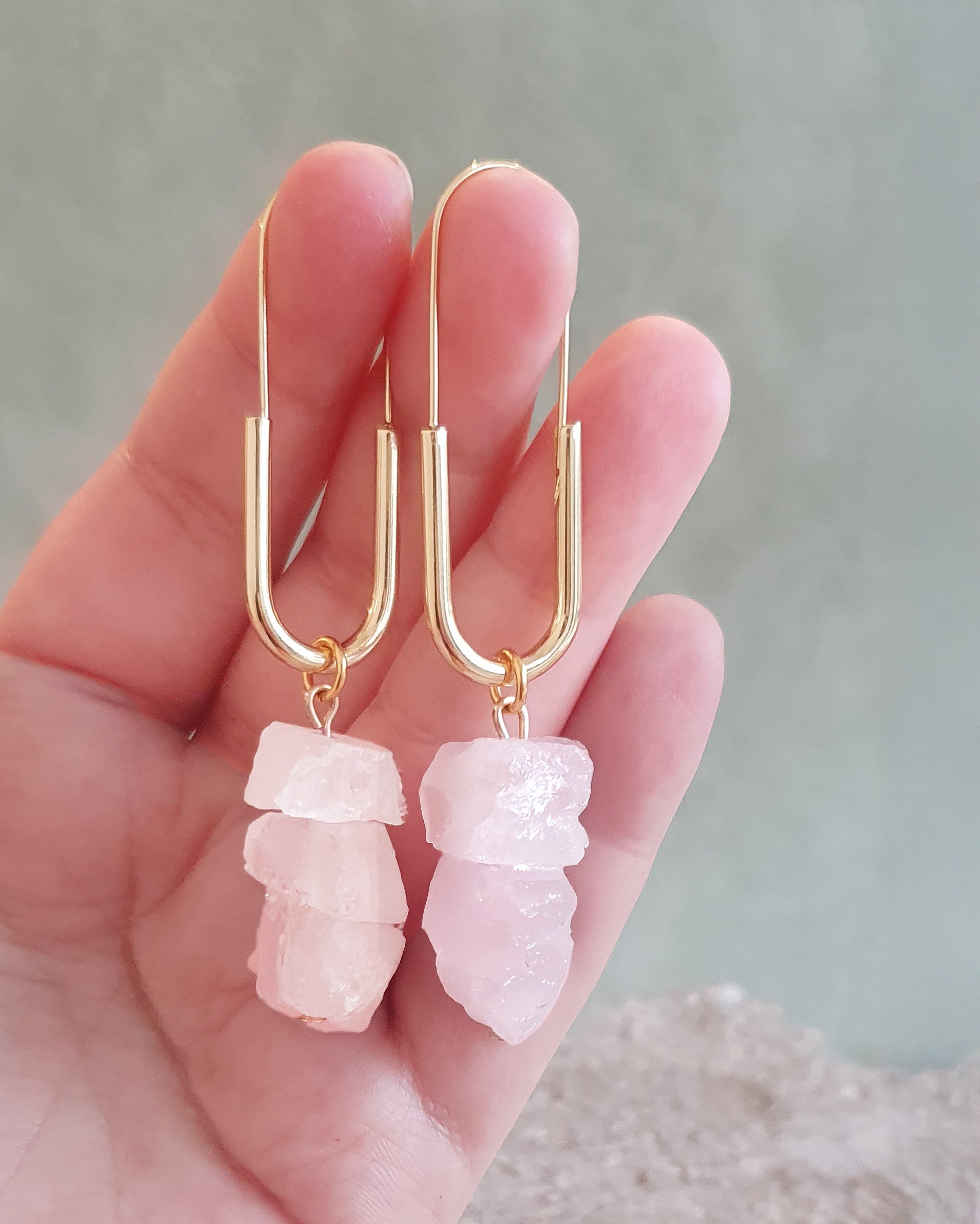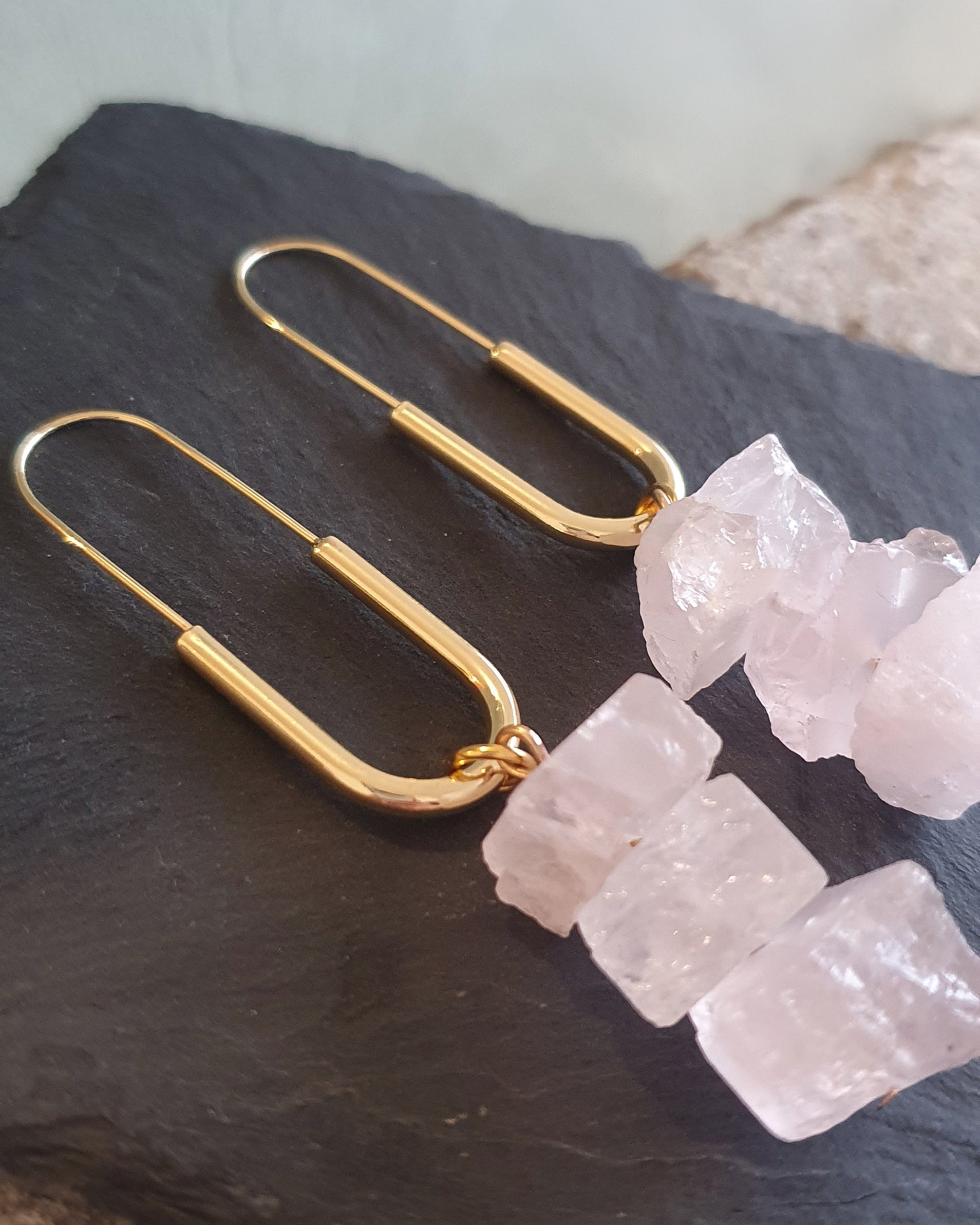 עגילי חישוק קצת שונים, בשילוב עם אבני רוז קוורץ טבעיות.